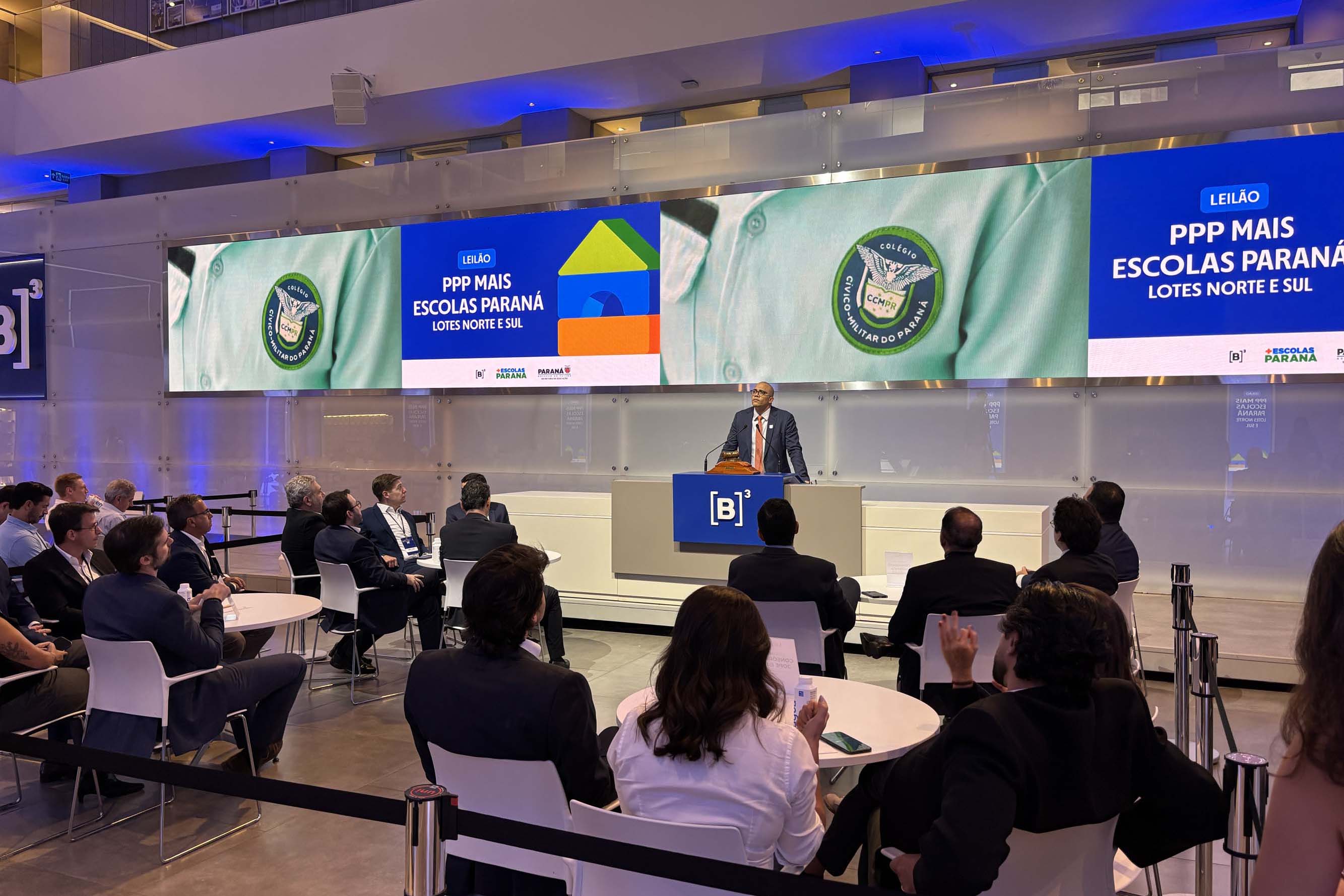 Com deságio próximo de 18% em relação aos valores de referência, o Governo do Paraná definiu nesta terça-feira (24), na B3, em São Paulo, a empresa vencedora do leilão de concessão do programa Mais Escolas Paraná. A CSInfra S/A venceu a disputa nos dois lotes e será responsável pela construção e manutenção de 40 novas unidades no modelo de Parceria Público-Privada (PPP).